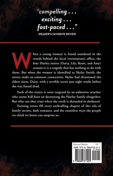 When a young woman is found murdered in the woods behind the local veterinarian's office, the four Hurley sisters (Daisy, Lily, Rosie, and Amy) assume it is a tragedy that has nothing to do with them. But when the woman is identified as Skylar Smith, the sisters make an ominous connection: Skylar had threatened the eldest sister, Daisy, with a terrible secret just eight weeks before she was found dead. Each of the sisters is soon targeted by an unknown attacker who seems hell-bent on destroying the Hurley family altogether. But who can they trust when the truth is shrouded in darkness?