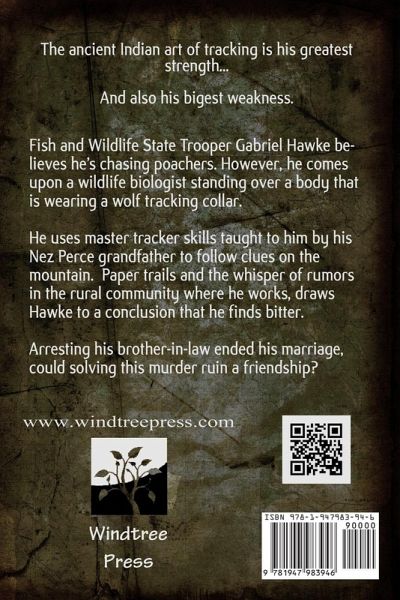 Large Print The ancient Indian art of tracking is his greatest strength... And also his biggest weakness. Fish and Wildlife State Trooper Gabriel Hawke believes he's chasing poachers. However, he comes upon a wildlife biologist standing over a body that is wearing a wolf tracking collar. He uses master tracker skills taught to him by his Nez Perce grandfather to follow clues on the mountain. Paper trails and the whisper of rumors in the rural community where he works, draws Hawke to a conclusion that he finds bitter. Arresting his brother-in-law ended his marriage, could solving this murder ruin a friendship?
