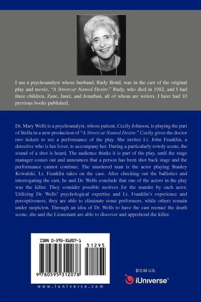 Dr. Mary Wells is a psychoanalyst, whose patient, Cecily Johnson, is playing the part of Stella in a new production of "A Streetcar Named Desire." Cecily gives the doctor two tickets to see a performance of the play. She invites Lt. John Franklin, a detective who is her lover, to accompany her. During a particularly rowdy scene, the sound of a shot is heard. The audience thinks it is part of the play, until the stage manager comes out and announces that a person has been shot back stage and the performance cannot continue. The murdered man is the actor playing Stanley Kowalski. Lt. Franklin takes on the case. After checking out the ballistics and interrogating the cast, he and Dr. Wells conclude that one of the actors in the play was the killer. They consider possible motives for the murder by each actor. Utilizing Dr. Wells' psychological expertise and Lt. Franklin's experience and perceptiveness, they are able to eliminate some performers, while others remain under suspicion. Through an idea of Dr. Wells to have the cast reenact the death scene, she and the Lieutenant are able to discover and apprehend the killer.