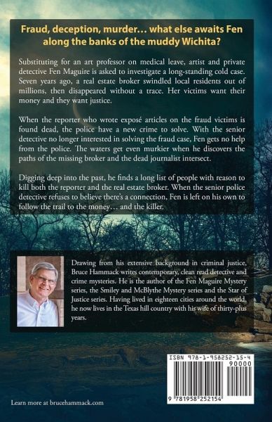 Fraud, deception, murder... what else awaits Fen along the banks of the muddy Wichita? Substituting for an art professor on medical leave, artist and private detective Fen Maguire is asked to investigate a long-standing cold case. Seven years ago, a real estate broker swindled local residents out of millions, then disappeared without a trace. Her victims want their money and they want justice. When the reporter who wrote exposé articles on the fraud victims is found dead, the police have a new crime to solve. With the senior detective no longer interested in solving the fraud case, Fen gets no help from the police. The waters get even murkier when he discovers the paths of the missing broker and the dead journalist intersect. Digging deep into the past, he finds a long list of people with reason to kill both the reporter and the real estate broker. When the senior police detective refuses to believe there's a connection, Fen is left on his own to follow the trail to the money... and the killer. Join PI Fen Maguire as he investigates a cold fraud case and gets a murder thrown in to boot! Suspects swirl around him like the snowflakes he puts on canvas. Murder On The Wichita, delivers a twisting, turning Christmas mystery with no foul language, violence, gore or sexual scenes.