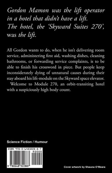 Gordon Mamon was the lift operator in a hotel that didn't have a lift. The hotel, the 'Skyward Suites 270', was the lift. All Gordon wants to do, when he isn't delivering room service, administering first aid, washing dishes, cleaning bathrooms, or forwarding service complaints, is to be able to finish his crossword in piece. But people keep inconsiderately dying of unnatural causes during their stay aboard his lift-module on the Skyward space elevator. Welcome to Module 270, an orbit-transiting hotel with a suspiciously high body count.