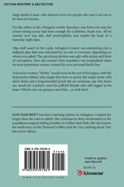 Paige Smith is back-the detective hero for people who aren't cut out to be detective heroes. For the editor of the Arlington weekly Spectator, one front-row seat for a hair-raising scoop had been enough for a lifetime, thank you. All he wanted now was safe, dull predictability, and maybe the hope of a Saturday night date. Alas, dull wasn't in the cards. Arlington County was simmering over a ballpark plan that was welcomed by no one or everyone, depending on whom you asked. The upcoming election was ugly with racism and hints of corruption. Now, the county's first marathon was jeopardized when its most prominent runner crossed his own personal finish line. And as for women, "Smitty" would soon be far out of his league, with the hyperactive athlete who taught him how to sprint; the single mom with short skirts and a long-barreled pistol; the no-nonsense cop who knew too much for comfort-and the jailbird blonde who still tugged at his heart. Which one was going to save him.or sink him?