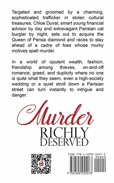 Targeted and groomed by a charming, sophisticated trafficker in stolen cultural treasures, Chloe Duval, smart young financial advisor by day and extravagant Parisian cat burglar by night, sets out to acquire the Queen of Persia diamond and races to stay ahead of a cadre of foes whose murky motives spell murder. In a world of opulent wealth, fashion, friendship among thieves, on-and-off romance, greed, and duplicity where no one is quite what they seem, even a high-society wedding or a quiet stroll down a Parisian street can turn instantly to intrigue and danger.