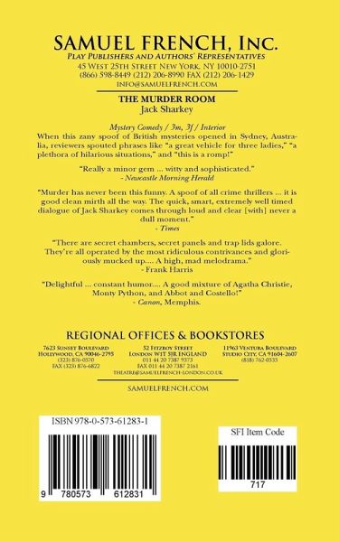 Mystery Comedy / 3m., 3f. / Int. When this zany spoof of British mysteries opened in Sydney, Australia, reviewers spouted phrases like "a great vehicle for three ladies," "a plethora of hilarious situations," and "this is a romp!" "Really a minor gem ... witty and sophisticated." - Newcastle Morning Herald "Murder has never been this funny. A spoof of all crime thrillers ... it is good clean mirth all the way. The quick, smart, extremely well timed dialogue of Jack Sharkey comes through l
