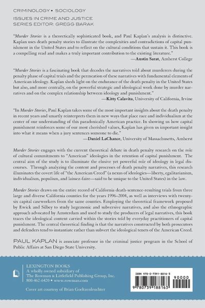 Murder Stories engages with the current theoretical debate in death penalty research on the role of cultural commitments to 'American' ideologies in the retention of capital punishment. The central aim of the study is to illuminate the elusive yet powerful role of ideology in legal discourses. Through analyzing the content and processes of death penalty narratives, this research illuminates the covert life of 'the American Creed,' (a nexus of ideologies-liberty, egalitarianism, individualism, populism, and laissez faire-said to be unique to the United States) in the law. Murder Stories draws on the entire record of California death sentence resulting trials from three large and diverse California counties for the years 1996 - 2004, as well as interviews with 26 capital caseworkers (attorneys, judges, and investigators) from the same counties. Employing the theoretical framework proposed by Ewick and Silbey (1995) to study hegemonic and subversive narratives, and also the ethnographic approach advocated by Amsterdam and Hertz (1992) to study the producers and processes of constructing legal narratives, this book traces the ideological content carried within the stories told by everyday practitioners of capital punishment by investigating the content, process, and ideological implications of these narratives. The central theoretical finding is that the narratives constructed by both prosecutors and defenders tend to instantiate rather than subvert the ideological tenets of the American Creed.