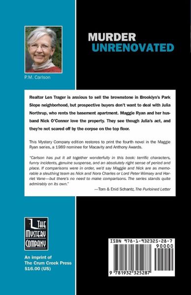 Realtor Len Trager is anxious to sell the brownstone in Brooklyn's Park Slope neighborhood, but prospective buyers don't want to deal with Julia Northrup, who rents the basement apartment. Maggie Ryan and her husband Nick O'Connor love the property. They see though Julia's act, and they're not scared off by the corpse on the top floor. This Mystery Company edition restores to print the fourth novel in the Maggie Ryan series, a 1989 nominee for Macavity and Anthony Awards.