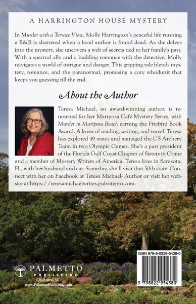 In Murder with a Terrace View, Molly Harrington's peaceful life running a B&B is shattered when a local author is found dead. As she delves into the mystery, she uncovers a web of secrets tied to her family's past. With a spectral ally and a budding romance with the detective, Molly navigates a world of intrigue and danger. This gripping tale blends mystery, romance, and the paranormal, promising a cozy whodunit that keeps you guessing till the end.