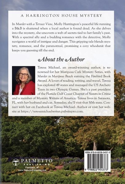 In Murder with a Terrace View, Molly Harrington's peaceful life running a B&B is shattered when a local author is found dead. As she delves into the mystery, she uncovers a web of secrets tied to her family's past. With a spectral ally and a budding romance with the detective, Molly navigates a world of intrigue and danger. This gripping tale blends mystery, romance, and the paranormal, promising a cozy whodunit that keeps you guessing till the end.