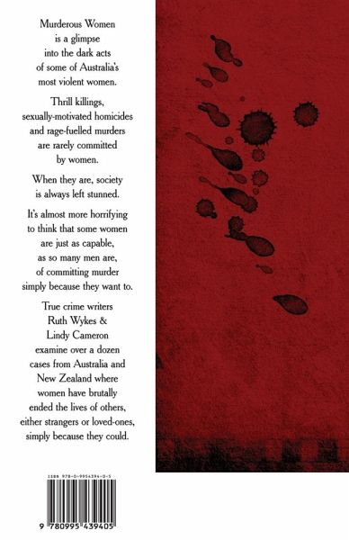 Murderous Women is a glimpse into the dark acts of some of Australia's most violent women. Thrill killings, sexually-motivated homicides and rage-fuelled murders are rarely committed by women. When they are, society is always left stunned. It's almost more horrifying to think that some women are just as capable, as so many men are, of committing murder simply because they want to. True crime writers Ruth Wykes and Lindy Cameron examine over a dozen cases from Australia and New Zealand where women have brutally ended the lives of others, either strangers or loved-ones, simply because they could.