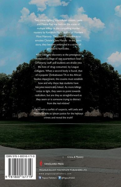 Two crime-fighting South-Asian cousins, Leela and Meena Rao are back on the scene of multiple killings in this compelling murder mystery by Kamakshi Murti, author of Murders Most Matronly. The cousins' ambition is to emulate Christie's Jane Marple - in this latest story, they become embroiled in a series of gruesome homicides. After a bloody discovery at the prestigious Anderson College of star quarterback Sean O'Flaherty, staff and students are drawn into the lives of drug-consumed, Ivy League collegians. When a second body is found, that of a popular Zimbabwean TA in the African Studies department, the cousins must establish how and why these two students have become inextricably linked. As more killings come to light, they seem to point towards radicalism, but are they as straightforward as they seem or is someone trying to distract from the real motive? Faced with a surfeit of suspects, will Leela and Meena be able to obtain justice for the heinous crimes and reveal the truth?