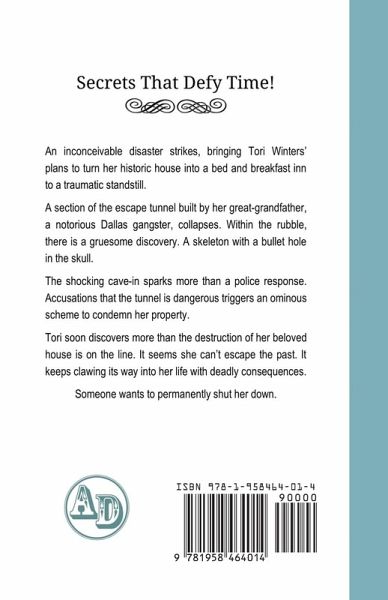 Secrets That Defy Time. An inconceivable disaster strikes, bringing Tori Winters' plans to turn her historic house into a bed and breakfast inn to a traumatic standstill. A section of the escape tunnel built by her great-grandfather, a notorious Dallas gangster, collapses. Within the rubble, there is a gruesome discovery. A skeleton with a bullet hole in the skull. The shocking cave-in sparks more than a police response. Accusations that the tunnel is dangerous triggers an ominous scheme to condemn her property. Tori soon discovers more than the destruction of her beloved house is on the line. It seems she can't escape the past. It keeps clawing its way into her life with deadly consequences. Someone wants to permanently shut her down.