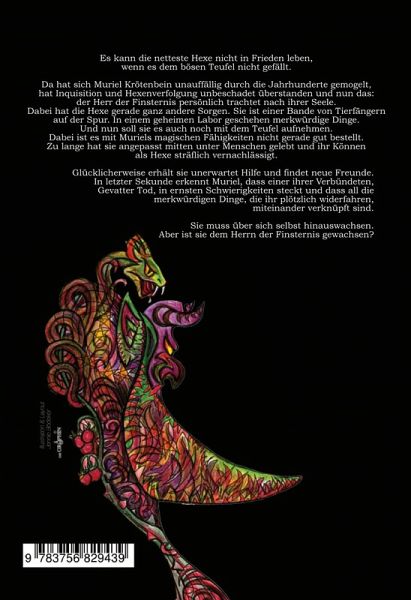 Tauche ein in die fantastische Welt der liebenswerten Hexe Muriel, die im Kampf gegen Tierfänger und den Teufel höchstpersönlich über sich hinauswächst!Es kann die netteste Hexe nicht in Frieden leben, wenn es dem bösen Teufel nicht gefällt. Da hat sich Muriel Krötenbein unauffällig durch die Jahrhunderte gemogelt, hat Inquisition und Hexenverfolgung unbeschadet überstanden und nun das: Der Herr der Finsternis persönlich trachtet nach ihrer Seele. Dabei hat die Hexe gerade ganz andere Sorgen. Sie ist einer Bande von Tierfängern auf der Spur. In einem geheimen Labor geschehen merkwürdige Dinge. Und nun soll sie es auch noch mit dem Teufel aufnehmen. Dabei ist es mit Muriels magischen Fähigkeiten nicht gerade gut bestellt. Zu lange hat sie angepasst mitten unter Menschen gelebt und ihr Können als Hexe sträflich vernachlässigt. Glücklicherweise erhält sie unerwartet Hilfe und findet neue Freunde. In letzter Sekunde erkennt Muriel, dass einer ihrer Verbündeten, Gevatter Tod, in ernsten Schwierigkeiten steckt und dass all die merkwürdigen Dinge, die ihr plötzlich widerfahren, miteinander verknüpft sind. Sie muss über sich selbst hinauswachsen. Aber ist sie dem Herrn der Finsternis gewachsen?