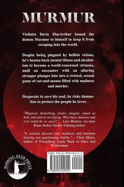 Violinist Davis MacArthur bound the demon Murmur to himself to keep it from escaping into the world. Despite being plagued by hellish visions, he's beaten back mental illness and alcoholism to become a world-renowned virtuoso, until an encounter with an alluring stranger plunges him into a twisted, sexual game of cat-and-mouse filled with madness and murder. Desperate to save his soul, he risks damnation to protect the people he loves.