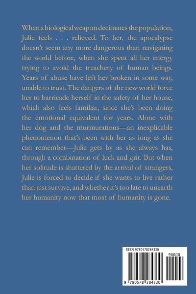 When a biological weapon decimates the population, Julie feels . . . relieved. To her, the apocalypse doesn't seem any more dangerous than navigating the world before, when she spent all her energy trying to avoid the treachery of human beings. Years of abuse have left her broken in some way, unable to trust. The dangers of the new world force her to barricade herself in the safety of her house, which also feels familiar, since she's been doing the emotional equivalent for years. Alone with her dog and the murmurations-an inexplicable phenomenon that's been with her as long as she can remember-Julie gets by as she always has, through a combination of luck and grit. But when her solitude is shattered by the arrival of strangers, Julie is forced to decide if she wants to live rather than just survive, and whether it's too late to unearth her humanity now that most of humanity is gone.