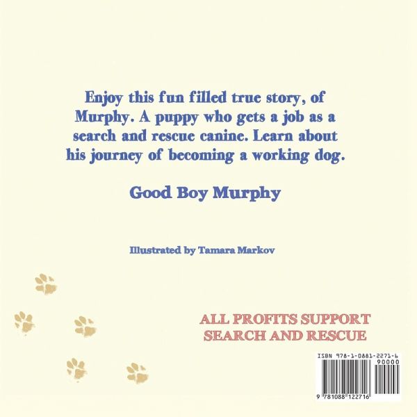 Enjoy this fun filled true story, of Murphy. A puppy who gets a job as a search and rescue canine. Learn about his journey of becoming a working dog. Good Boy Murphy. ALL PROFITS SUPPORTSEARCH AND RESCUE
