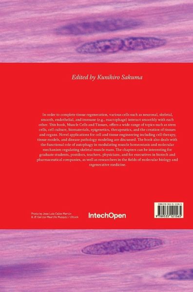 In order to complete tissue regeneration, various cells such as neuronal, skeletal, smooth, endothelial, and immune (e.g., macrophage) interact smoothly with each other. This book, Muscle Cells and Tissues, offers a wide range of topics such as stem cells, cell culture, biomaterials, epigenetics, therapeutics, and the creation of tissues and organs. Novel applications for cell and tissue engineering including cell therapy, tissue models, and disease pathology modeling are discussed. The book also deals with the functional role of autophagy in modulating muscle homeostasis and molecular mechanism regulating skeletal muscle mass. The chapters can be interesting for graduate students, postdocs, teachers, physicians, and for executives in biotech and pharmaceutical companies, as well as researchers in the fields of molecular biology and regenerative medicine.