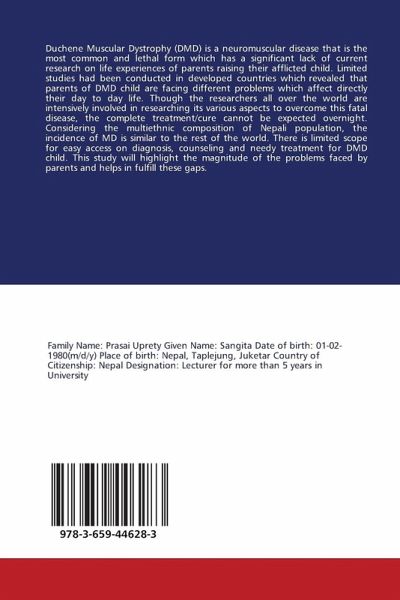 Duchene Muscular Dystrophy (DMD) is a neuromuscular disease that is the most common and lethal form which has a significant lack of current research on life experiences of parents raising their afflicted child. Limited studies had been conducted in developed countries which revealed that parents of DMD child are facing different problems which affect directly their day to day life. Though the researchers all over the world are intensively involved in researching its various aspects to overcome this fatal disease, the complete treatment/cure cannot be expected overnight. Considering the multiethnic composition of Nepali population, the incidence of MD is similar to the rest of the world. There is limited scope for easy access on diagnosis, counseling and needy treatment for DMD child. This study will highlight the magnitude of the problems faced by parents and helps in fulfill these gaps.