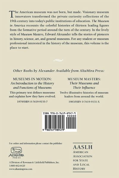 The Museum in America captures the life stories of thirteen visionary museum leaders who helped transform the 19th century's collection of curios into today's institution of public service and education. In the lively style of Museum Masters, Alexander recounts the stories of pioneers in American history, science, art, and general museums. For anyone interested in the history of the museum, this volume is the place to start.