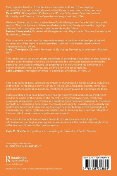 This wide-ranging book explores the impact of marketization on the creative industries. With critical perspectives from a variety of disciplines and global experts, numerous examples from international cultural institutions are employed to illuminate the topic. Culture and business have become increasingly intertwined, and cultural institutions need to be aware of their place in the market. Commercial awareness, which was previously disparaged, is now seen as a legitimate and necessary response to increased competition, enhancing experience, increasing accessibility, broadening inclusivity and sustainable futures with diminishing funding. The contributions to this book highlight that marketing, public relations, sponsorship and fundraising have become integral to the survival of many museums, galleries and events. Of interest to students and scholars across topics such as arts marketing, arts administration, heritage marketing and museum studies, the book is also insightful for reflective practitioners in the creative sector.