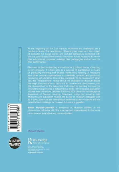 The need to theorise learning and culture for a cultural theory of learning is very pressing. If culture acts as a process of signification, a means of producing meaning that shapes worldviews, learning in museums and other cultural organisations is potentially dynamic and profound, producing self-identities. How is this complexity to be 'measured'? What can this 'measurement' reveal about the character of museum-based learning? The calibration of culture is an international phenomenon, and the measurement of the outcomes and impact of learning in museums in England has provided a detailed case study. Three national evaluation studies were carried out between 2003 and 2006 based on the conceptual framework of Generic Learning Outcomes. Using this revealing data Museums and Education reveals the power of museum pedagogy and as it does, questions are raised about traditional museum culture and the potential and challenge for museum futures is suggested.