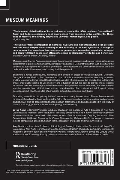 Museums and Sites of Persuasion examines the concept of museums and memory sites as locations that attempt to promote human rights, democracy and peace. Demonstrating that such sites have the potential to act as powerful spaces of persuasion or contestation, the book also shows that there are perils in the selective memory and history that they present. Examining a range of museums, memorials and exhibits in places as varied as Burundi, Denmark, Georgia, Kosovo, Mexico, Peru, Vietnam and the US, this volume demonstrates how they represent and try to come to terms with difficult histories. As sites of persuasion, the contributors to this book argue, their public goal is to use memory and education about the past to provide moral lessons to visitors that will encourage a more democratic and peaceful future. However, the case studies also demonstrate how political, economic and social realities often undermine this lofty goal, raising questions about how these sites of persuasion actually function on a daily basis. Straddling several interdisciplinary fields of research and study, Museums and Sites of Persuasion will be essential reading for those working in the fields of museum studies, memory studies, and genocide studies. It will also be essential reading for museum practitioners and anyone engaged in the study of history, sociology, political science, anthropology and art history. Chapter 3 of this book is freely available as a downloadable Open Access PDF at http://www.taylorfrancis.com under a Creative Commons Attribution-Non Commercial-No Derivatives (CC-BY-NC-ND) 4.0 license.