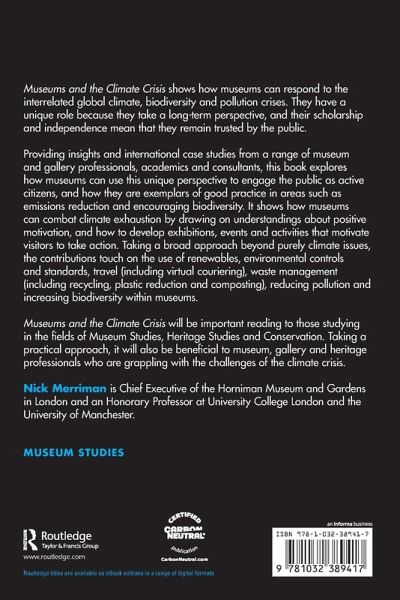 Providing insights and international case studies from a range of museum and gallery professionals, academics and consultants, this book explores how museums can use this unique perspective to engage the public as active citizens, and how they are exemplars of good practice in areas such as emissions reduction and encouraging biodiversity. It shows how museums can combat climate exhaustion by drawing on understandings about positive motivation, and how to develop exhibitions, events and activities that motivate visitors to take action. Taking a broad approach beyond purely climate issues, the contributions touch on the use of renewables, environmental controls and standards, travel (including virtual couriering), waste management (including recycling, plastic reduction and composting), reducing pollution and increasing biodiversity within museums.