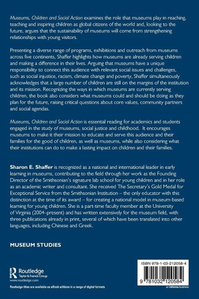 Presenting a diverse range of programs, exhibitions and outreach from museums across five continents, Shaffer highlights how museums are already serving children and making a difference in their lives. Arguing that museums have a unique responsibility to connect this audience with relevant social issues and challenges, such as social injustice, racism, climate change and poverty, Shaffer simultaneously acknowledges that a large number of children are still on the margins of the institution and its mission. Recognizing the ways in which museums are currently serving children, the book also considers what museums could and should be doing as they plan for the future, raising critical questions about core values, community partners and social agendas.