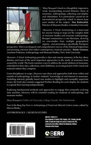 Museums: A Visual Anthropology provides a clear and concise summary of the key ideas, debates and texts of the most important approaches to the study of museums from around the world. The book examines ways to address the social relations of museums, embedded in their sites, collections, and exhibitions, as an integral part of the visual and material culture they comprise. Cross-disciplinary in scope, Museums uses ideas and approaches both from within and outside of anthropology to further students' knowledge of and interest in museums. Including selected, globally based case studies to highlight and exemplify important issues, the book also contains suggested Further Reading for each chapter, for students to expand their learning independently. Exploring fundamental methods and approaches to engage this constantly evolving time machine, Museums will be essential reading for students of anthropology and museum studies.