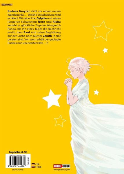 Band 21 im Sammelschuber mit Freiplatz für die Bände 15-20Der Isekai-Manga basierend auf der beliebten japanischen Light-Novel-Reihe hat jetzt auch einen Anime auf Crunchyroll! Mushoku Tensei ist ein spannender Manga, der durch die sympathischen Charaktere und emotionale Tiefe auch zum Nachdenken anregt. Die Reihe erzählt die Geschichte eines 34-jährigen arbeitslosen Stubenhockers, der nach seinem Tod in einer mittelalterlichen Fantasywelt wiedergeboren wird und schwört ein neues und bedeutungsvolles Leben zu führen. Das erwartet dich in Band 21: Rudeus Greyrat steht vor einem neuen Wendepunkt ... Welche Entscheidung wird er fällen? Mit seiner Frau Sylphie und seinen jüngeren Schwestern Norn und Aisha verlebt er glückliche Tage im Königreich Ranoa, bis ihn eines Tages die Nachricht ereilt, dass Paul und seine Begleitung auf der Suche nach Mutter Zenith in Not geraten sind. Welche unerwartete Person reicht dem geplagten Rudeus nun eine helfende Hand ...?! Für Fans von Isekai-, Fantasy-, Drama- und Comedy-Manga!Abmessungen Schuber: 22 x 15,5 x 10,1 cm