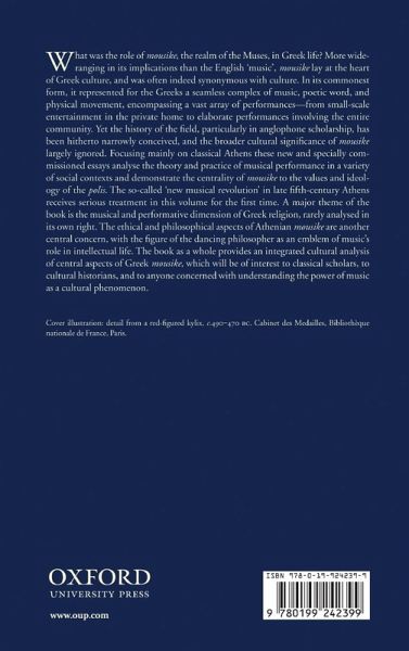 What was the role of mousike, the realm of the Muses, in Greek life? More wide-ranging in its implications than the English 'music', mousike lay at the heart of Greek culture, and was often indeed synonymous with culture. In its commonest form, it represented for the Greeks a seamless complex of music, poetic word, and physical movement, encompassing a vast array of performances - from small-scale entertainment in the private home to elaborate performances involving the entire community. Yet the history of the field, particularly in anglophone scholarship, has been hitherto narrowly conceived, and the broader cultural significance of mousike largely ignored. Focusing mainly on classical Athens these new and specially commissioned essays analyse the theory and practice of musical performance in a variety of social contexts and demonstrate the centrality of mousike to the values and ideology of the polis. The so-called 'new musical revolution' in late fifth-century Athens receives serious treatment in this volume for the first time. A major theme of the book is the musical and mousike dimension of Greek religion, rarely analysed in its own right. The ethical and philosophical aspects of Athenian mousike are another central concern, with the figure of the dancing philosopher as an emblem of music's role in intellectual life. The book as a whole provides an integrated cultural analysis of central aspects of Greek mousike, which will be of interest to classical scholars, to cultural historians, and to anyone concerned with understanding the power of music as a cultural phenomenon.