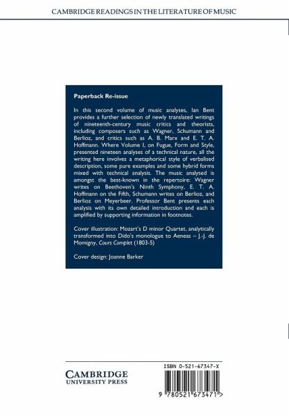 In this second volume of nineteenth-century music analyses, Ian Bent provides a further selection of newly translated writings of nineteenth-century music critics and theorists, including composers such as Wagner, Schumann and Berlioz, and critics such as A. B. Marx and E. T. A. Hoffmann. Where Volume I, on Fugue, Form and Style, presented nineteen analyses of a technical nature, all the writing here involves a metaphorical style of verbalised description, some pure examples, and others hybrid forms mixed with technical analysis. The music analysed is amongst the best-known in the repertoire: Wagner writes on Beethoven's Ninth Symphony, E. T. A. Hoffmann on the Fifth, Schumann writes on Berlioz, and Berlioz on Meyerbeer. Professor Bent presents each analysis with its own detailed introduction and each is amplified by supporting information in footnotes.