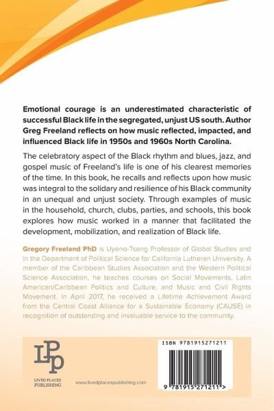 Emotional courage is an underestimated characteristic of successful Black life in the segregated, unjust US south. Author Greg Freeland reflects on how music reflected, impacted, and influenced Black life in 1950s and 1960s North Carolina. The celebratory aspect of the Black rhythm and blues, jazz, and gospel music of Freeland's life is one of his clearest memories of the time. In this book, he recalls and reflects upon how music was integral to the solidary and resilience of his Black community in an unequal and unjust society. Through examples of music in the household, church, clubs, parties, and schools, this book explores how music worked in a manner that facilitated the development, mobilization, and realization of Black life.