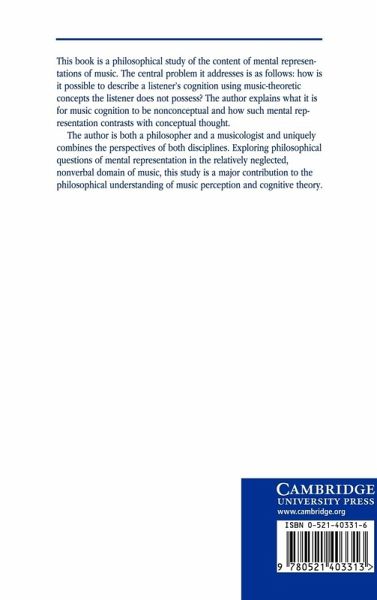 This book is a philosophical study of the relations between hearing and thinking about music. By applying the concepts and techniques of analytic philosophy the author explores the ways in which musical hearing may be described as nonconceptual, and how such mental representation contrasts with conceptual thought.