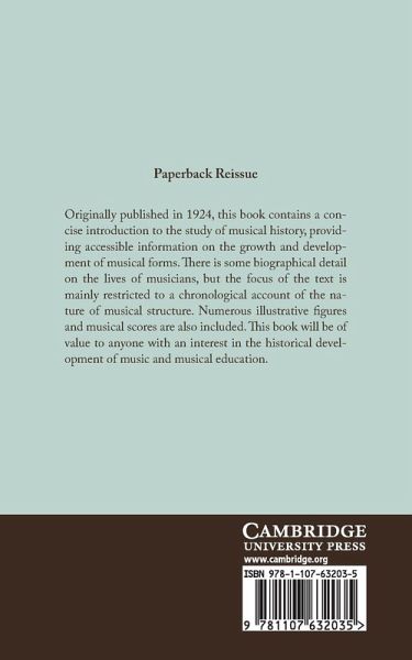 Originally published in 1924, this book contains a concise introduction to the study of musical history, providing accessible information on the growth and development of musical forms. There is some biographical detail on the lives of musicians, but the focus of the text is mainly restricted to a chronological account of the nature of musical structure. Numerous illustrative figures and musical scores are also included. This book will be of value to anyone with an interest in the historical development of music and musical education.