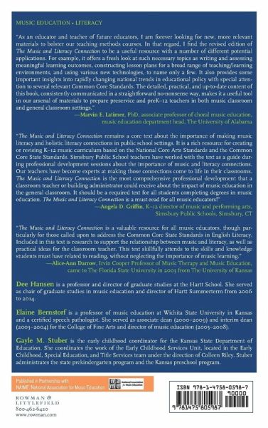 The second edition of The Music and Literacy Connection expands our understanding of the links between reading and music by examining those skills and learning processes that are directly parallel for music learning and language arts literacy in the pre-K, elementary, and secondary levels.