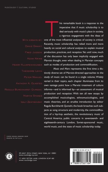 Well-known contributors analyze the ways in which Marxist thought enters into music discourse. Exploring everything from Marxism in hip-hop to feudal properties of Hindustani music to revolutionary music of Central America, the essays in this book find surprising, paradigm-shifting revelations. This book will revolutionize the way music production and consumption is viewed. First published in 2002.