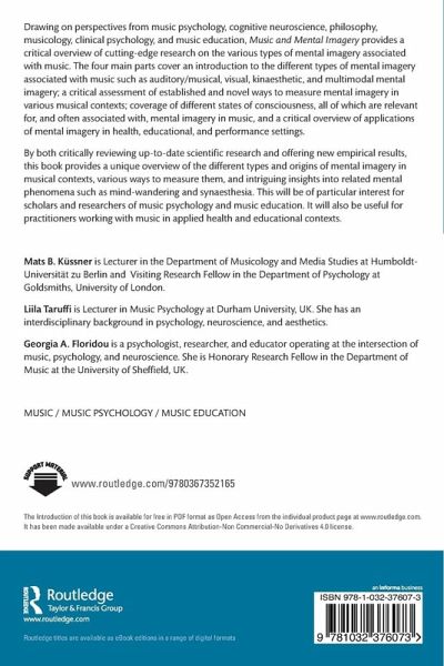By both critically reviewing up-to-date scientific research and offering new empirical results, this book provides a unique overview of the different types and origins of mental imagery in musical contexts, various ways to measure them, and intriguing insights into related mental phenomena such as mind-wandering and synaesthesia. This will be of particular interest for scholars and researchers of music psychology and music education. It will also be useful for practitioners working with music in applied health and educational contexts.