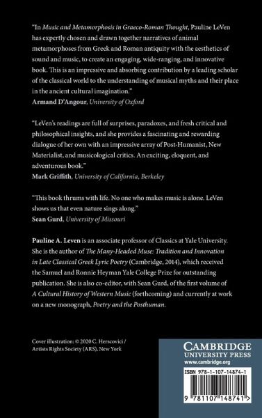 Examines aesthetic and ontological questions raised by Greco-Roman myths of human metamorphosis into non-human musical beings. Placing the myths within their ancient intellectual contexts, it reads them in dialogue with contemporary questions about what it means to be human. Aimed at classicists, musicologists, and scholars of the posthumanities.