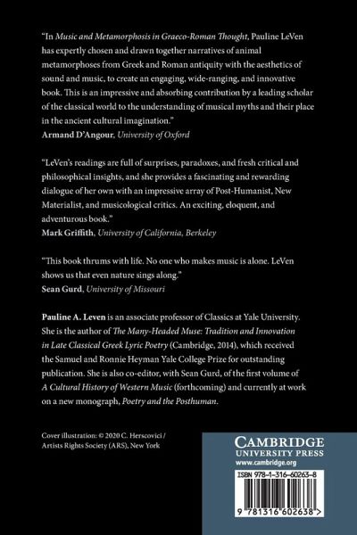 Examines aesthetic and ontological questions raised by Greco-Roman myths of human metamorphosis into non-human musical beings. Placing the myths within their ancient intellectual contexts, it reads them in dialogue with contemporary questions about what it means to be human. Aimed at classicists, musicologists, and scholars of the posthumanities.