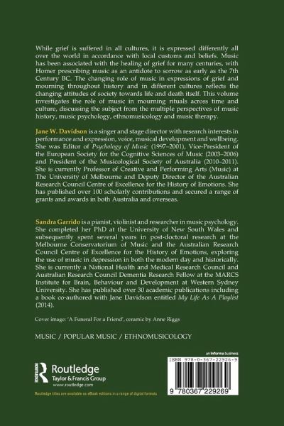 While grief is suffered in all cultures, it is expressed differently all over the world in accordance with local customs and beliefs. Music has been associated with the healing of grief for many centuries, with Homer prescribing music as an antidote to sorrow as early as the 7th Century BC. The changing role of music in expressions of grief and mourning throughout history and in different cultures reflects the changing attitudes of society towards life and death itself. This volume investigates the role of music in mourning rituals across time and culture, discussing the subject from the multiple perspectives of music history, music psychology, ethnomusicology and music therapy.