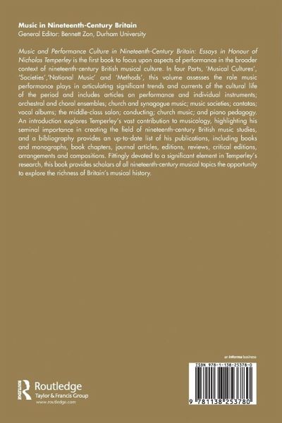 Music and Performance Culture in Nineteenth-Century Britain: Essays in Honour of Nicholas Temperley is the first book to focus upon aspects of performance in the broader context of nineteenth-century British musical culture. In four Parts, 'Musical Cultures', 'Societies', 'National Music' and 'Methods', this volume assesses the role music performance plays in articulating significant trends and currents of the cultural life of the period and includes articles on performance and individual instruments; orchestral and choral ensembles; church and synagogue music; music societies; cantatas; vocal albums; the middle-class salon, conducting; church music; and piano pedagogy. An introduction explores Temperley's vast contribution to musicology, highlighting his seminal importance in creating the field of nineteenth-century British music studies, and a bibliography provides an up-to-date list of his publications, including books and monographs, book chapters, journal articles, editions, reviews, critical editions, arrangements and compositions. Fittingly devoted to a significant element in Temperley's research, this book provides scholars of all nineteenth-century musical topics the opportunity to explore the richness of Britain's musical history.
