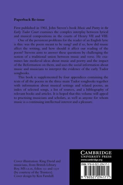 First published in 1962, John Stevens' book examines the complex interplay between lyrical and musical compositions in the courts of Henry VII and VIII. One of the persistent problems for the reader of an English lyric is this: was the poem meant to be sung? and if so, how did music affect the writing, and how should it affect our reading of the poem? Stevens aims to answer these questions by challenging the notion of a traditional union between music and verse. He examines late medieval ideas about music and poetry and the impact of the Reformation on them, and uses the social information about music and musicians to interpret the evidence of the early Tudor songbooks. This book is supplemented by four appendices containing the texts of all the poems in the three main Tudor songbooks together with information about musical settings and related poems, an index of selected songs, a list of sources, and a bibliography of relevant books and articles. It is hoped that this volume will appeal to practising musicians and scholars, as well as anyone for whom music is a continuing intellectual interest and a pleasure.