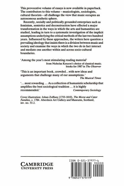 This provocative volume of essays is now available in paperback. The contributors to this volume--musicologists, sociologists, cultural theorists--all challenge the view that music occupies an autonomous aesthetic sphere.
