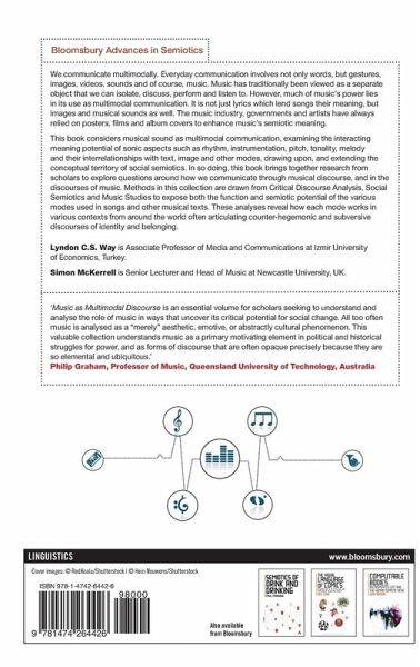 We communicate multimodally. Everyday communication involves not only words, but gestures, images, videos, sounds and of course, music. Music has traditionally been viewed as a separate object that we can isolate, discuss, perform and listen to. However, much of music's power lies in its use as multimodal communication. It is not just lyrics which lend songs their meaning, but images and musical sounds as well. The music industry, governments and artists have always relied on posters, films and album covers to enhance music's semiotic meaning. Music as Multimodal Discourse: Semiotics, Power and Protest considers musical sound as multimodal communication, examining the interacting meaning potential of sonic aspects such as rhythm, instrumentation, pitch, tonality, melody and their interrelationships with text, image and other modes, drawing upon, and extending the conceptual territory of social semiotics. In so doing, this book brings together research from scholars to explore questions around how we communicate through musical discourse, and in the discourses of music. Methods in this collection are drawn from Critical Discourse Analysis, Social Semiotics and Music Studies to expose both the function and semiotic potential of the various modes used in songs and other musical texts. These analyses reveal how each mode works in various contexts from around the world often articulating counter-hegemonic and subversive discourses of identity and belonging.