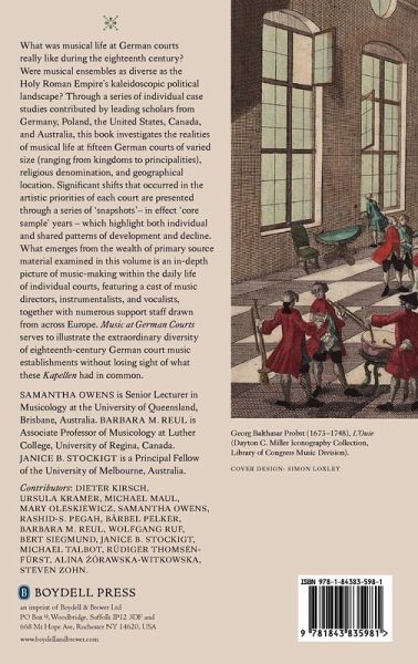 What was musical life at German courts really like during the first six decades of the eighteenth century? Were musical ensembles as diverse as the Holy Roman Empire's kaleidoscopic political landscape? Through a series of individual case studies contributed by leading scholars from Germany, Poland, the United States, Canada, and Australia, this book investigates the realities of musical life at fifteen German courts of varied size (ranging from kingdoms to principalities), religious denomination, and geographical location. Significant shifts that occurred in the artistic priorities of each court are presented through a series of 'snapshots'- in effect 'core sample' years - which highlight both individual and shared patterns of development and decline. What emerges from the wealth of primary source material examined in this volume is an in-depth picture of music-making within the daily life of individual courts, featuring a cast of music directors, instrumentalists, and vocalists, together with numerous support staff drawn from across Europe. 'Music at German Courts' serves to illustrate the extraordinary diversity of eighteenth-century German court music establishments without losing sight of what these 'Kapellen' had in common. SAMANTHA OWENS is Senior Lecturer in Musicology at the University of Queensland, Brisbane, Australia. BARBARA M. REUL is Associate Professor of Musicology at Luther College, University of Regina, Canada. JANICE B. STOCKIGT is a Principal Fellow of the University of Melbourne, Australia. Contributors: DIETER KIRSCH, URSULA KRAMER, MICHAEL MAUL, MARY OLESKIEWICZ, SAMANTHA OWENS, RASHID-S. PEGAH, BÄRBEL PELKER, BARBARA M. REUL, WOLFGANG RUF, BERT SIEGMUND, JANICE B. STOCKIGT, MICHAEL TALBOT, RÜDIGER THOMSEN-FÜRST, ALINA ZORAWSKA-WITKOWSKA, STEVEN ZOHN