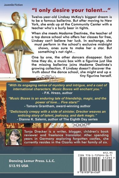 "I only desire your talent..." Twelve-year-old Lindsey McKay's biggest dream is to be a famous ballerina. But after moving to New York, she ends up at the Community Center with a teacher who's a burly bear in tights. When she meets Madame Destinée, the teacher of a top dance school who offers her classes for free, Lindsey can't believe her luck. In exchange, she must perform in the school's exclusive midnight shows, ones sure to make her a star. But something's not right... One by one, the other dancers disappear. Each time they do, a music box with a figurine just like the missing ballerina joins Madame Destinée's growing collection. If Lindsey doesn't discover the truth about the dance school, she might end up a tiny figurine herself.