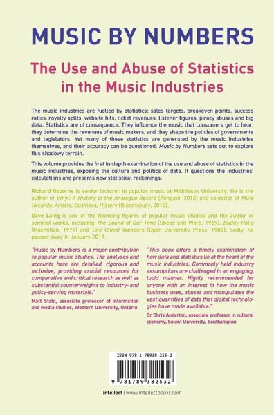 This edited collection examines statistics within the music industry. Its aim is to expose the historical and contemporary use and abuse of these numbers, both nationally and internationally. It addresses their impact on consumersâ choices, upon the careers of musicians and upon the policies that governments and legislators make.