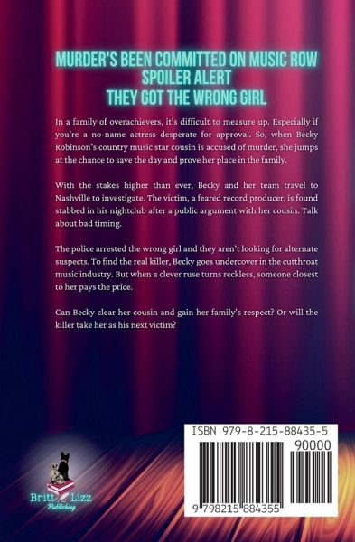 Murder's Been Committed on Music Row. Spoiler Alert, They Got the Wrong Girl In a family of overachievers, it's difficult to measure up. Especially if you're a no-name actress desperate for approval. So, when Becky Robinson's country music star cousin is accused of murder, she jumps at the chance to save the day and prove her place in the family. With the stakes higher than ever, Becky and her team travel to Nashville to investigate. The victim, a feared record producer, is found stabbed in his nightclub after a public argument with her cousin. Talk about bad timing. The police arrested the wrong girl and they aren't looking for alternate suspects. To find the real killer, Becky goes undercover in the cutthroat music industry. But when a clever ruse turns reckless, someone closest to her pays the price. Can Becky clear her cousin and gain her family's respect? Or will the killer take her as his next victim? ------------------------- Music City Murder is the enchanting third installment in the Hollywood Whodunit cozy mystery series. If you love clumsy heroines, a country music backdrop, quirky suspects, and an adorable rescue puppy this series is for you! Hollywood Whodunit Series OrderBook 0: Lake Day Shenanigans Book 1: Prime Time Murder Book 2: Stand-In Murder Book 3: Music City Murder Book 4. Trap Door Murder Book 5: Fool's Gold Murder Book 6: Holly Jolly Murder Book 7: Blue Suede Murder Book 8: Family Reunion Murder Book 9: Summer Vacation Murder Book 10: Sunlight Swindler Murder Book 11: Castle Island Murder