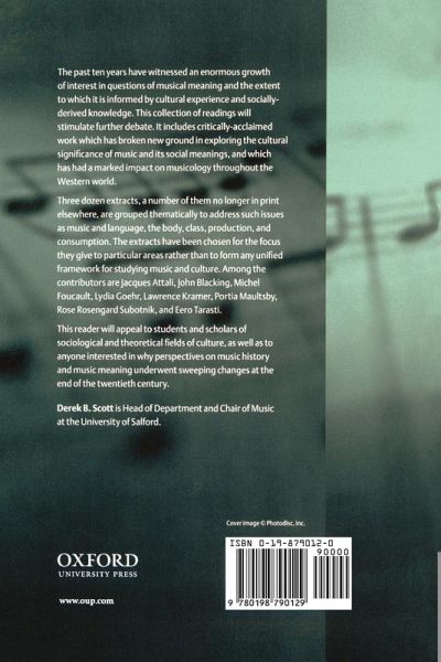 This reader collects some of the most important essays on the relationship between culture and music. The topic has received enormous attention over the last few decades, transforming musicology throughout much of the Western world. The essays examine the connections between music and such diverse areas as language, the body, class, production, and consumption. Among the contributors are Jacques Attali, John Blacking, Michel Foucault, Lydia Goehr, Lawrence Kramer, Portia Maultsby, Rose Rosengard-Subotnik, Theodor Adorno, and Ero Tarasti. The collection provides an ideal introduction for students of music, sociology and cultural studies and for anyone interested in contemporary musicology.