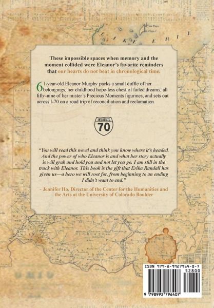 61-year-old Eleanor Murphy packs a duffle of her belongings, her childhood chest of failed dreams, all fifty-nine of her mister's Precious Moments figurines, and sets out across I-70 on a road trip of reconciliation and reclamation.